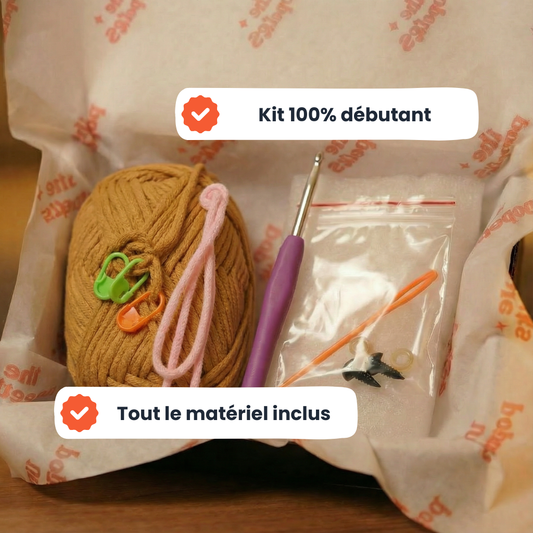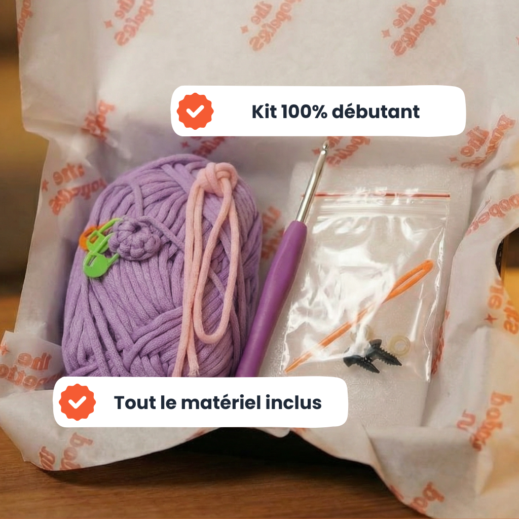 Le kit inclut un cercle magique préfait, un crochet ergonomique et un fil The Popettes spécial débutant pour t'aider à réussir.