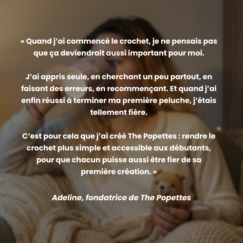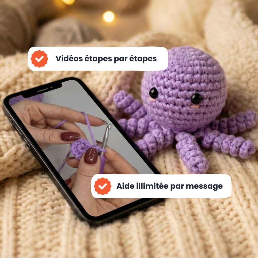 Chaque Popette est accompagnée de tutoriels vidéo pas à pas pour apprendre le crochet facilement, même si c'est ton tout premier projet crochet.