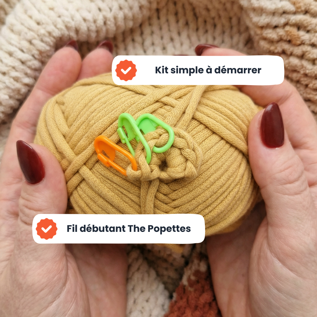 Le kit inclut un cercle magique préfait, un crochet ergonomique et un fil The Popettes spécial débutant pour t'aider à réussir.